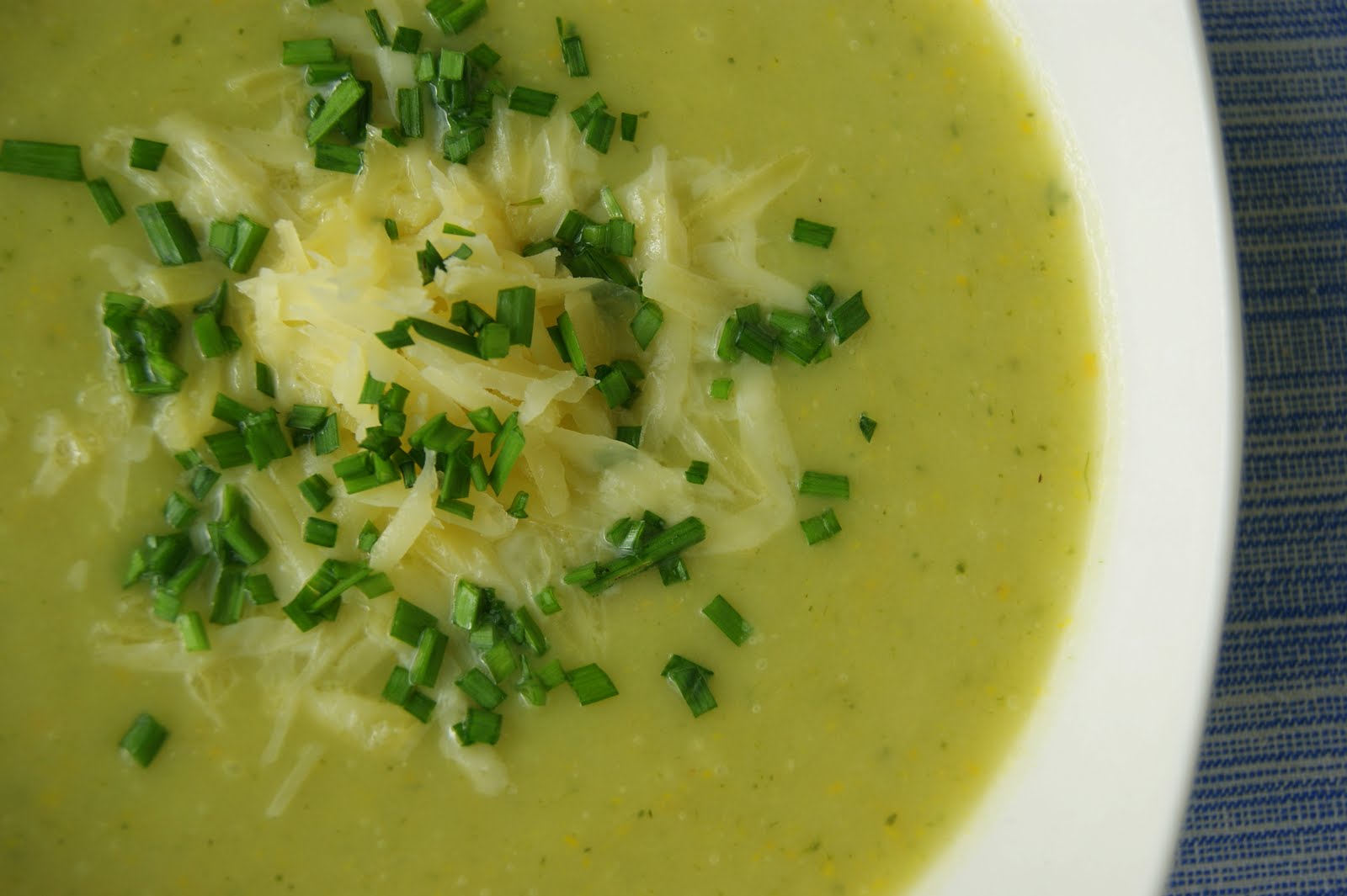 4. Noņem no plīts. Iemaisa daļu sarīvētā siera un nedaudz rīveta vai malta muskatrieksta. Ja gribās riktīgu biezzupu, tad pirms siera pievienošanas, zupu sablenderē cik biezu vēlas un tikai tad iemaisa sieru. Tā darīju es, jo man kaut kā vārīti cukini gabaliņi ne visai patikās. Un vēl, es nedaudz pievienoju saldo krējumu.